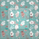 A cosy pattern of hand drawn mittens with unique doodled designs on each mitten. Coloured in a modern Christmas colour palette of mint blue & pastel colours.