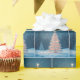 A beautifully illuminated Christmas tree stands in a snowy landscape, adorned with glowing lights and topped with a shining star