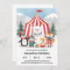 Make your child’s celebration magical with this adorable Winter Circus Birthday Invitation, featuring a charming red-and-white circus tent surrounded by cute winter animals — a penguin, polar bear, fox, and arctic friends dressed for the snowy season.