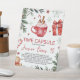 A festive winter-themed time capsule sign featuring a red cocoa mug with whipped cream and cinnamon, candy canes, snowflakes, pine greenery, a gingerbread cookie, and a holiday gift illustration. Designed for a first birthday celebration, this sign invites guests to write messages and memories to be opened in the future. Perfect for winter or Christmas birthdays and seasonal party décor.