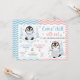 Celebrate the cutest shared winter birthday with this adorable penguin twins invitation! Featuring a sweet baby penguin boy with a charming blue bow tie sitting on a snowy cloud and a playful little penguin girl with a pretty pink bow, this design is perfect for twins, siblings, or best friends celebrating together.