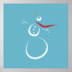 Simple white line drawing of a cute snowman with red scarf, carrot nose, and stick arms joyfully open to embrace the winter season. Edit to change the greenish-blue cyan background to any colour you wish. ♡ Idyllfire