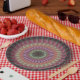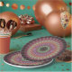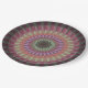 These premium quality paper plates feature a fascinating abstract vision of a large round Dahlia created with layers of interlocking gears in warm, muted colours such as Thyme Green, Fig, Malaga, Antique Rose, Lint Green, Clay, GrapeAde and Lupine; floating in front of a kaleidoscopic tunnel From an original painting by digital artist, Leslie Sigal Javorek.
