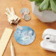 A personalised keychain with an image of a majestic deer in wintertime. An icy blue filtered background gives this photo a cold winter look with a magical feel. This proud, noble animal stands on a hill with wintery pine trees in the background.