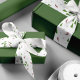 This holiday ribbon features a modern, simple pattern of downhill ski pattern of a winter scene with green pine trees and snowflakes.