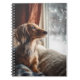 A heartwarming notebook featuring a long-haired dachshund cozily nestled on a blanket, gazing out the window at softly falling snow. Perfect for journaling, note-taking, or gifting to dachshund enthusiasts who love cozy winter days.
