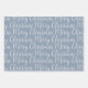 Winter Dusty Blue Christmas Script Holiday Wrapping Paper. Features designs of Merry Christmas, Merry and Bright, Happy Holidays.