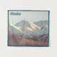 A bald eagle (Haliaeetus leucocephalus) flies in front of the snow-covered Chugach Range near Anchorage, AK. Customisable text reading, "Alaska" also appears.