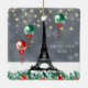 Winter Eiffel Tower, Christmas Balloons Nighttime Ceramic Ornament