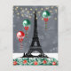 This beautiful Paris themed holiday greeting card features the Eiffel Tower in a snowy scene complete with Christmas coloured balloons.
