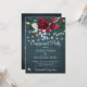 Rustic elegant winter wngagement party stylish invitation template on a dark navy blue chalkboard featuring a beautiful burgundy wine and white peony roses bouquet with hunter green foliage, strings of white twinkle lights, and a chic typography script. ++++++++++++++ Easy to personalise with your details! +++++++++++++++ The invitation is suitable for elegant winter rustic country modern / farmhouse / cottage / Christmas engagement or other couple parties.