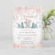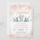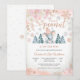Celebrate your special day with this charming winter baby shower invitation featuring a cute baby elephant in a pink striped hat surrounded by snowy pine trees, gold accents, and delicate floral details. Perfect for honouring parents-to-be, this whimsical design blends seasonal elegance with playful charm. Customise with your event details to create a memorable keepsake that guests will adore. Ideal for winter celebrations, this invitation adds warmth and joy to your gathering.