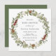 Winter themed baby shower invitation features a frame of watercolor wreath of eucalyptus and pinecones. Personalise with your information or click "Click to customise further" to edit font styles, size and colours.