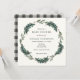 Fun Winter-themed baby shower invitation features a frame of greenery and evergreens with buffalo chequered plaid background. Personalise with your information or click "Click to customise further" to edit font styles, size and colours.