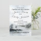 Invite guests to "Our Winter Fairytale" with this serene and romantic wedding invitation. The design features a beautiful watercolor painting of a misty winter landscape, complete with foggy pine trees and a tranquil frozen lake. The elegant script and classic fonts complement the moody, artistic feel. This invitation is perfect for a cozy winter, mountain, or forest-themed wedding. The soft, dusty blue and grey color palette creates a dreamy and sophisticated atmosphere.