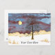 A watercolor painting of a bare sycamore tree and full moon adorns this customisable card!