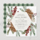 Bridal Shower invitation featuring a frame of winter florals and evergreens with classic green buffalo plaid background. These trendy invitations are perfect for a rustic bridal shower. Customise with your information for the bride to be. Click "click to customise further" to change the font style, size, or colour.