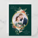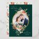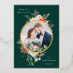 Winter Floral Green and Gold Circle Photo Foil Holiday Card
