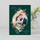 Send warm holiday wishes with this elegant photo card featuring your favourite picture framed in a gold foil circle surrounded by watercolor poinsettias, ivory roses, pine cones, holly berries, and lush green foliage. Set against a rich forest green background, this festive design combines timeless charm with a touch of luxury. Personalise the gold foil holiday card with your custom greeting and name. The back showcases a coordinating poinsettia pattern, creating a beautifully cohesive and memorable holiday keepsake.