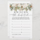 The Winter Floral Who Knows Bride the Best Shower Game captures the serene beauty of a winter wonderland, combining delicate florals and natural evergreen elements to create a charming and elegant design. The evergreen foliage represents strength and resilience, while creating a harmonious balance with the florals. Elegant calligraphy enhances the sophistication of the design, with a flowing script that mirrors the delicate curves of the flowers. Whether you're hosting a bridal shower in a cosy cabin or a chic urban setting, this design brings the beauty of nature and the elegance of winter to the forefront. Matching items are available.