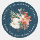 Dress up your holiday envelopes with our Winter Floral holiday stickers. The festive stickers feature a bouquet of watercolor poinsettias, ivory flowers, holly berries, pine cones & branches with your custom greeting and family's name bordering the sticker against a navy background.