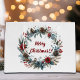 An elegant winter wreath design with Christmas flowers, pine cones and winter berries on a fir branch.