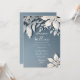 Magical winter wonderland wedding Invitation featuring crisp white winter flowers against a gradient icy blue backdrop.
