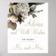 Elegant white ivory winter peonies with seasonal branches and foliage and gold handwritten trendy calligraphy script making a chic wedding sign inviting your guests to leave their advice and well wishes to the new Mr. and Mrs.. +++++++++++ For related wedding items please see the whole collection under the main image.
