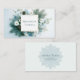 Winter Floral White and Blue Pine Cone Gold Frame Business Card