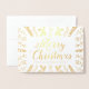 Stylish Winter Flourish holiday photo card design with a gold foil winter foliage border and "Merry Christmas" in an elegant script font. The inside of the gold foil card features placeholders for a photo and personalised message.