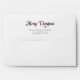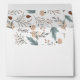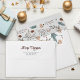 This Christmas envelope offers the greeting "Merry Christmas" in an elegant modern script and space for your name and return address on the back flap. The inside features a boho winter greenery pattern appearing in soft tan and teal colours.
