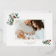A delicate and sophistiated photo holiday card design featuring a photo, winter foliage, and a foiled frame, and holiday greeting.