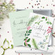 Winter Foliage Script Christmas Wedding. With your festive wedding in mind, a border of holly, ferns, mistletoe and berries is on the front with Wedding in a set informal script with your names, and the details are on the back. Easily personaslie the editable text, and if you wish to change the green background on the back you can do so via the customise further option.
