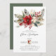 This elegant Christmas holiday baby shower invitation features gorgeous Christmas flowers with holly berries, white flowers and pine branches. The invitation is perfect for celebrating the upcoming mum during the holiday season. The overall design is festive and sophisticated, and the invitation is sure to impress your guests.