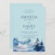 Invite your guests to a dreamy celebration surrounded by serene winter woods. This minimalist wedding invitation features a hand-painted snowy forest landscape in calming shades of blue and green. A perfect choice for couples who love nature, winter, and elegance in simplicity.