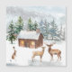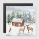 Celebrate the season with this elegant winter magnetic card. This design depicts a watercolor illustration of winter woodland scene - the fir trees, log-cabin, two deer and hare.