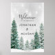 A beautiful winter/holiday/christmas design welcome sign for your wedding, shower, party etc with fir trees and a snowy backdrop, and pretty lanterns. Perfect for your seasonal celebrations! Matching items available in our shop.