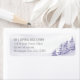 Winter wedding return address labels for your wedding invitation or rsvp envelopes, with scenic watercolor design in shades of lavender. The snow scene features a snowy mountain forest landscape with pine trees. All of the name and address text is editable and if you would like matching products, please browse my Winter Forest collection.