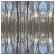 The pattern on this fabric comes from a photo of a deciduous forest in winter. All of the trees have lost their leaves. The trunks and bare branches are silhouetted against the blue sky.