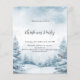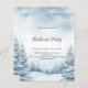 Watercolored winter forest with snow as background. Christmas Party written with modern and trendy large hand lettered style script. Personalise and add your party information.