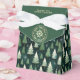 Sophisticated seasonal product bag for bakers or bakeries to package small items like artisan chocolates and mini candy canes. Winter forest with snowflakes on a forest green background. Add your business name and product name, or your holiday message and family name.