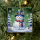 Add a charming touch to your tree this holiday season with a Green Winter Forest Snowman Christmas Holiday Ceramic Ornament. Ornament design features a cute snowman in a charming top hat and scarf standing in a winter forest scene with falling snow. Additional gift and holiday items available with this design as well.