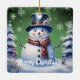 Winter Forest Snowman Christmas | Green Ceramic Ornament