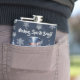 The flask itself is fine. It’s a cheap flask, obviously bought in bulk, however am prepared to overlook that. Given that it is a personalized item, I would have liked to have seen gift boxing instead of the generic packaging. Terrible printing, and/or quality. It’s a cheap, tacky vinyl. It is not cut straight and is also applied in a way that it is overhanging the bottom, causing the glue to catch on items and it will eventually roll and tear, damaging the wrap.