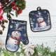 Winter Forest Snowman Christmas Oven Mitt & Pot Holder Set