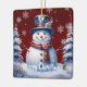 Add a charming touch to your tree this holiday season with a Red Winter Forest Snowman Christmas Holiday Ceramic Ornament. Ornament design features a cute snowman in a charming top hat and scarf standing in a winter forest scene with falling snow. Additional gift and holiday items available with this design as well.