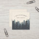 Unique square business cards for adventure guides, tour guides or any outdoor type occupation feature a forest of pine tree silhouettes in wintry shades of blue, with your name and business name, title or occupation above. Add your full contact details to the back in midnight blue lettering.