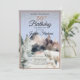 A winter-themed birthday invitation featuring snowy mountains, falling snow, evergreen trees, and watercolor polar bears, with elegant script typography, a soft pastel color palette, and a serene Arctic wilderness atmosphere; perfect for a winter birthday, milestone celebration, rustic winter party, or nature-inspired event.