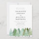 Perfect for boho-chic or rustic winter weddings, this invitation combines modern white typography with a touch of natural charm. The lush evergreens, delicately painted in muted forest greens and soft winter blues, bring a sense of calm sophistication to your wedding stationery.