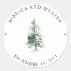 These modern, holiday wedding stickers feature a trendy green watercolor pine tree on a clean white background.
